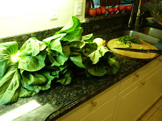 Prepare Bok Choy (chopping into bit size pieces, and then cleaning).